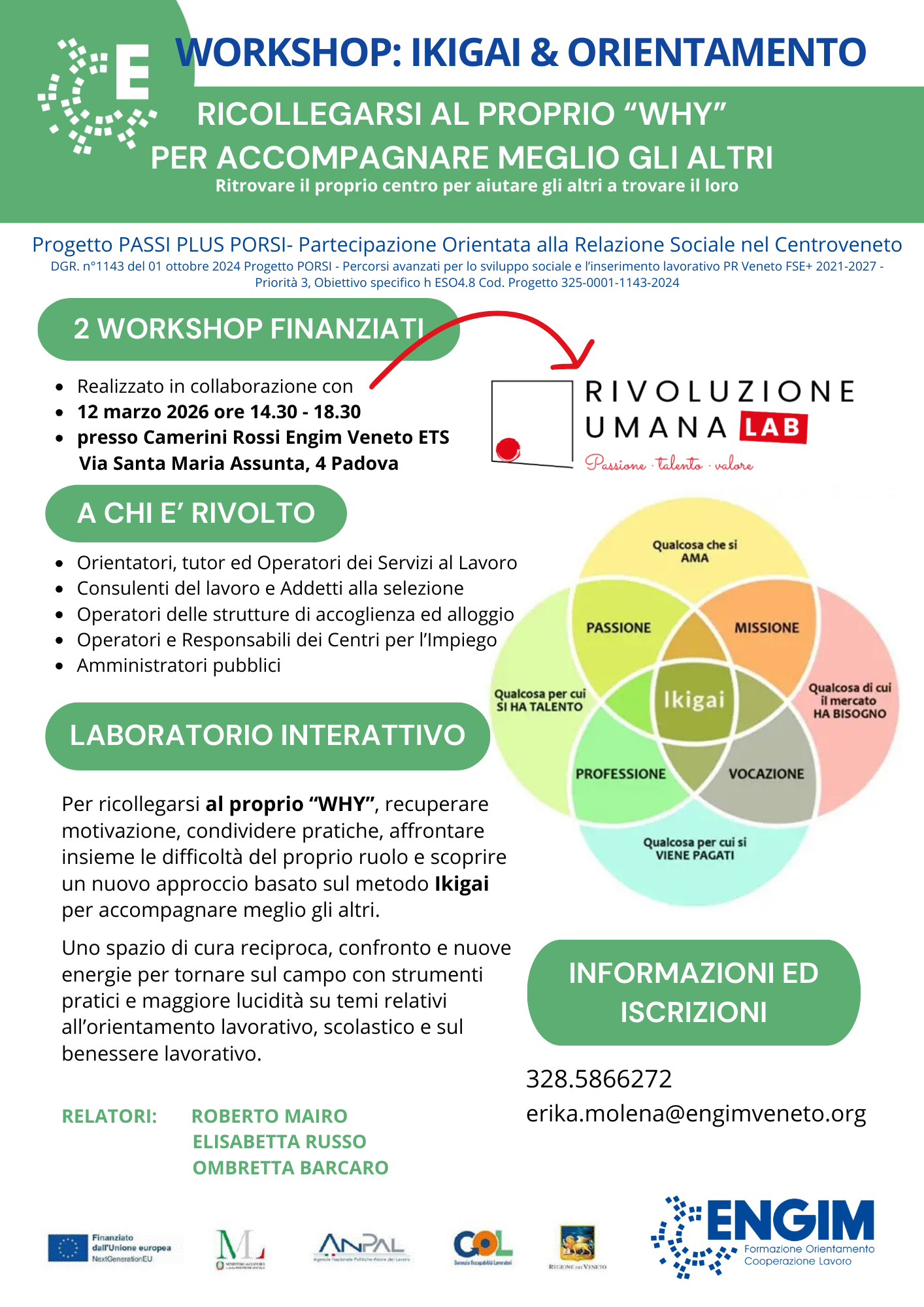 Ecco perché ENGIM Veneto rafforza il proprio impegno nella formazione degli adulti e dei professionisti del settore sociale, promuovendo, in collaborazione con Rivoluzione Umana Lab, nuove iniziative formative finanziate nell’ambito del progetto PASSI PLUS – Partecipazione Orientata alla Relazione Sociale nel Centroveneto.